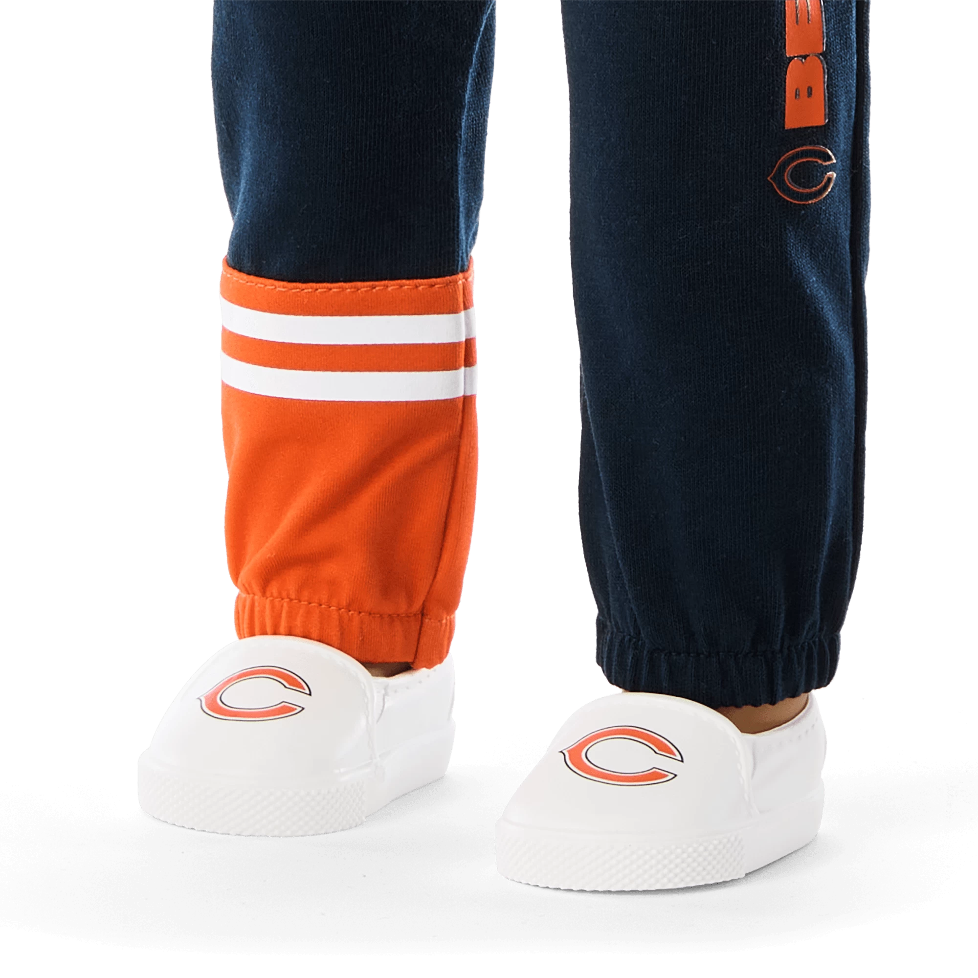- A pair of joggers with a white faux-drawstring waist, a color-block contrast detail at the hem of one pant leg, and the team logo on the upper side of the opposite pant leg