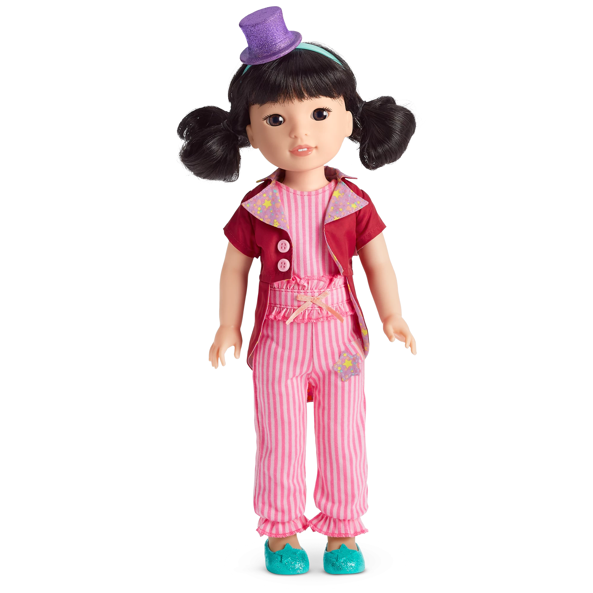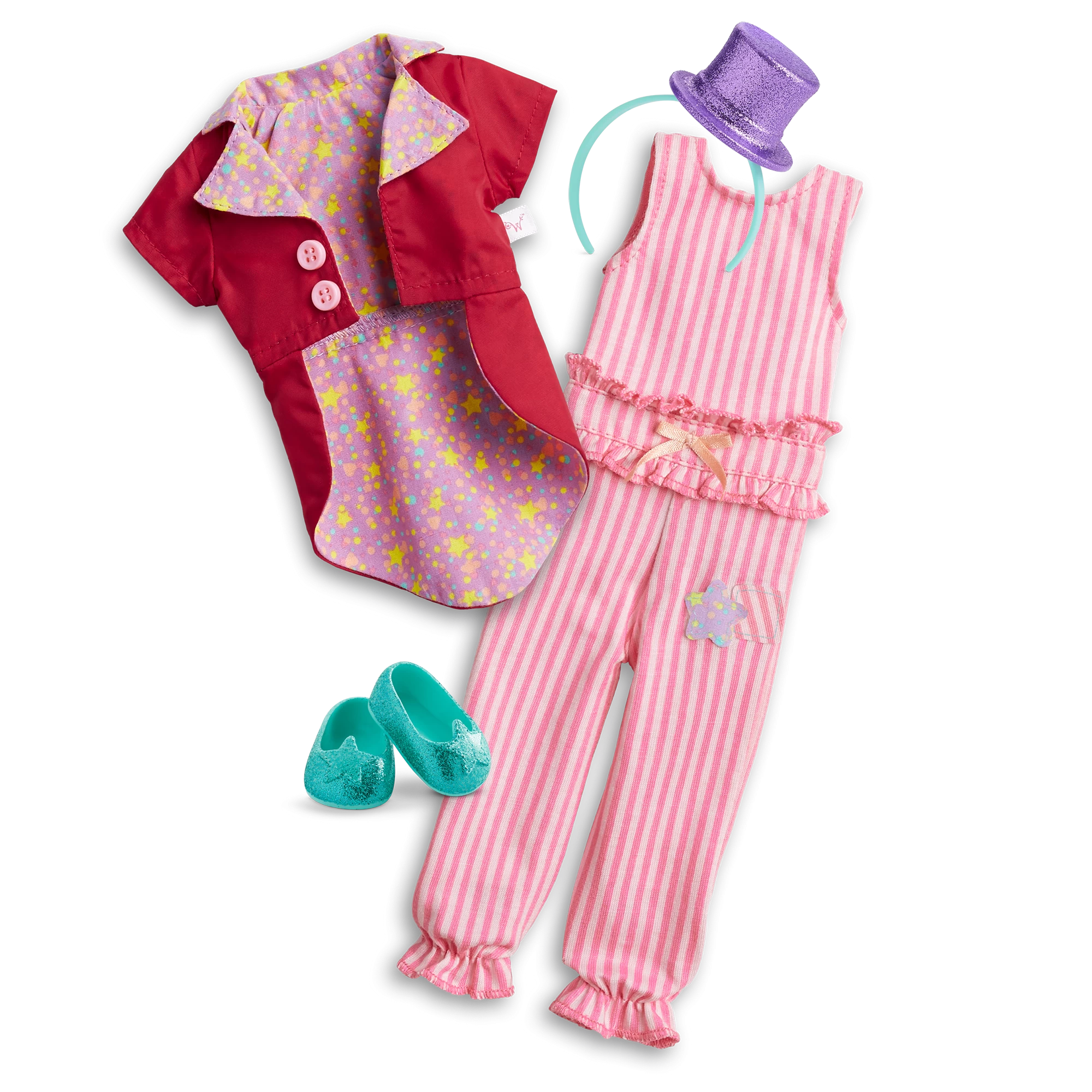 Step right up—the WellieWishers are staging a backyard carnival! This outfit is just right for the make-believe ringmaster:
