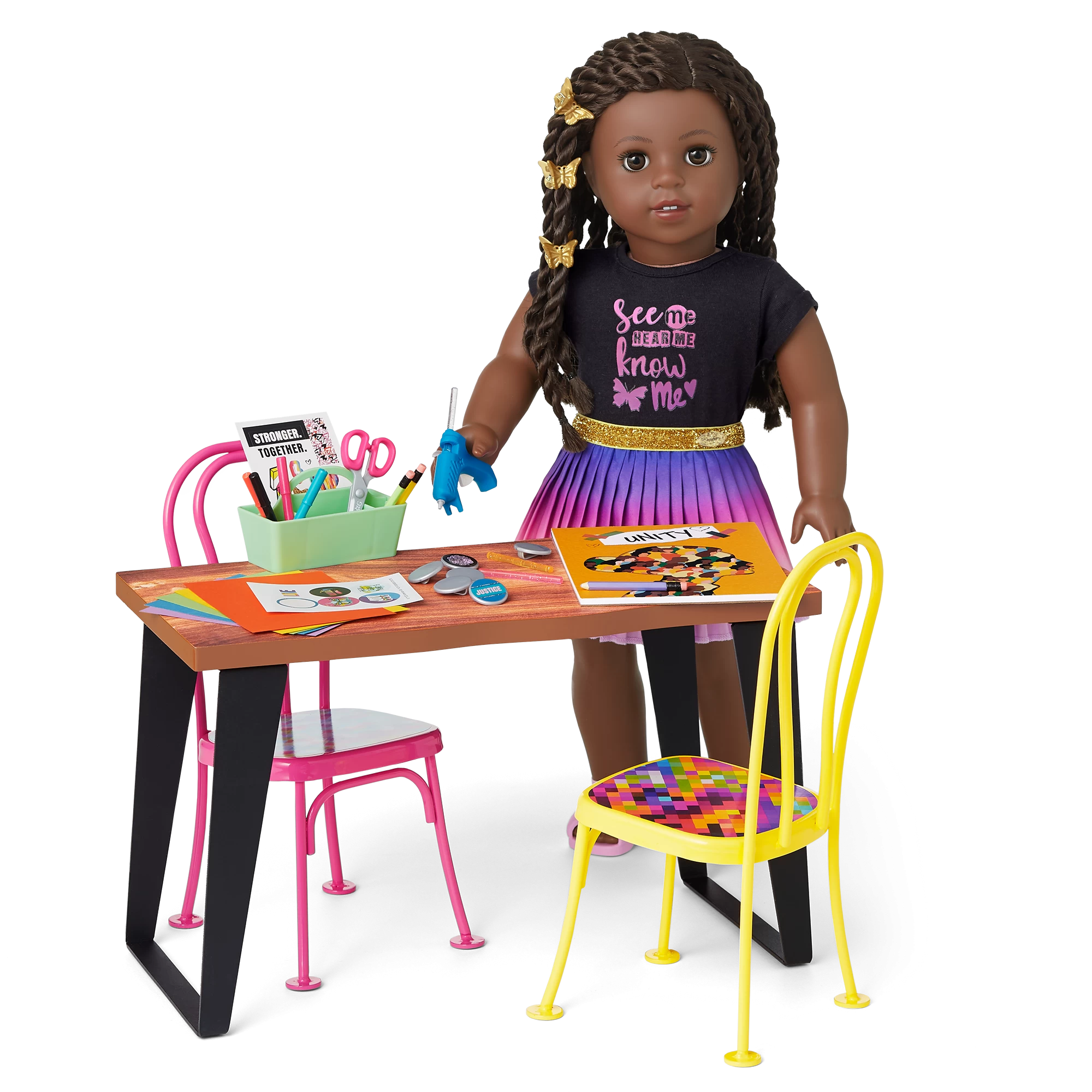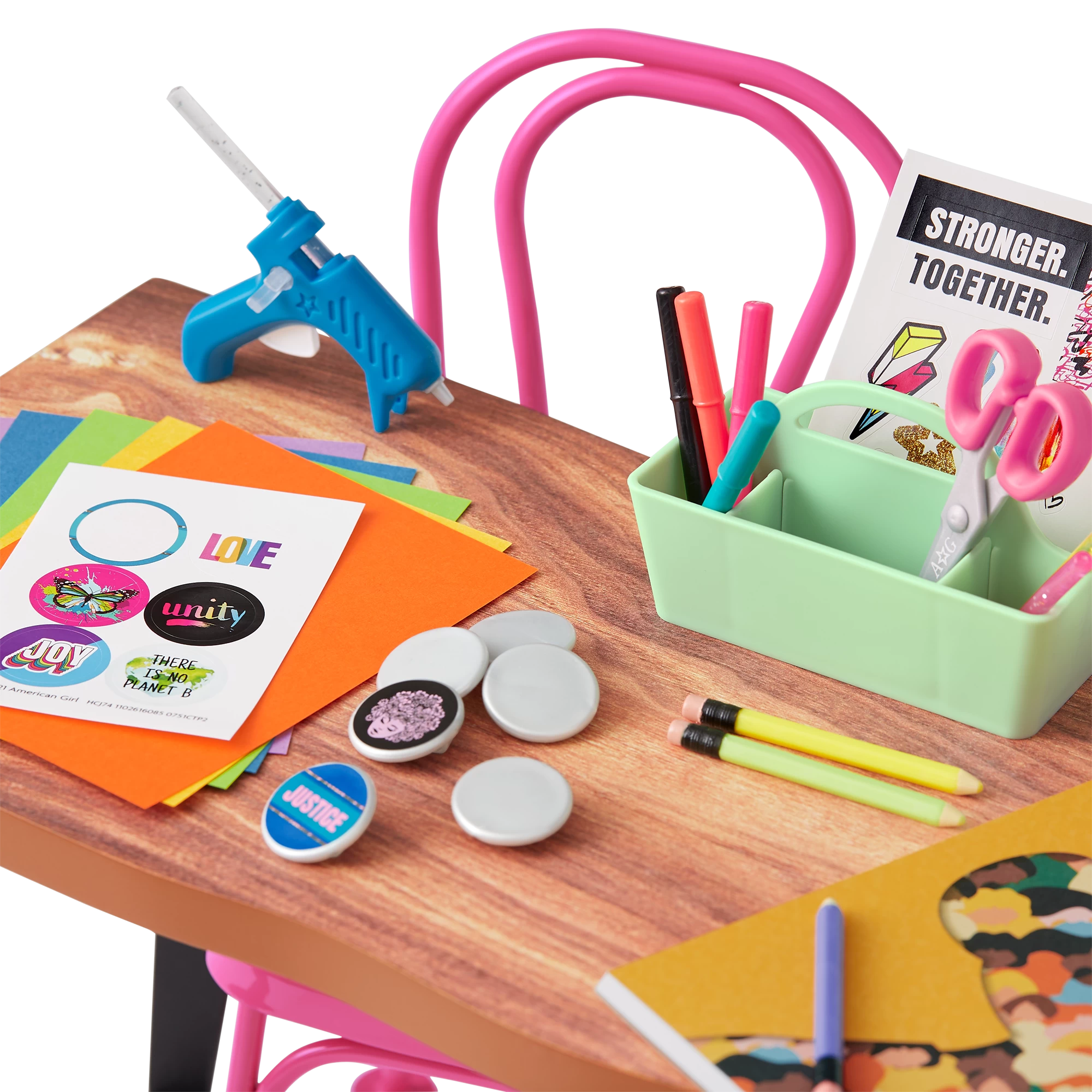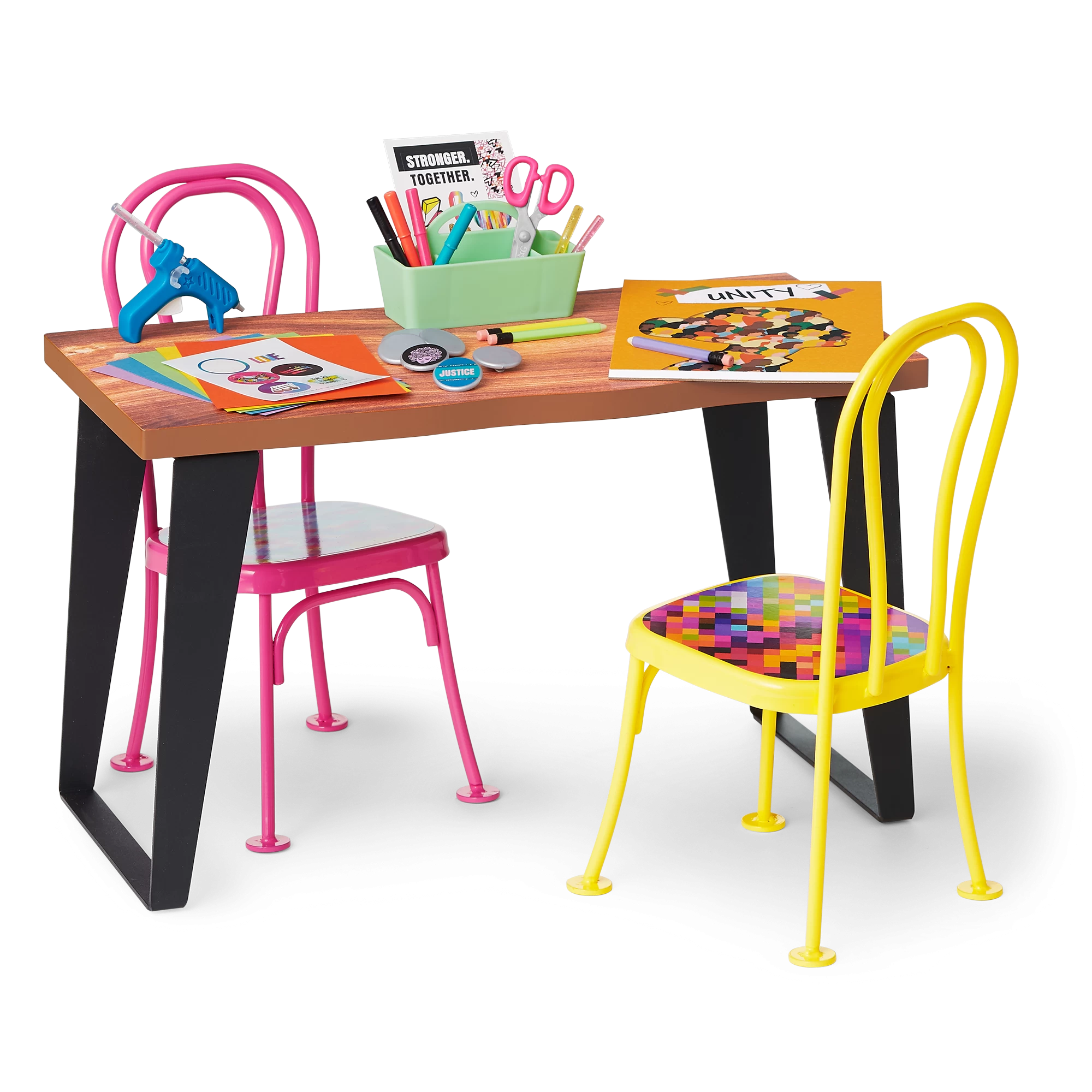 Riverfront Community Center is a gathering space for Makena, Evette, and Maritza to talk about the causes they are committed to and put their plans into action. This set serves as their creative command central and includes: